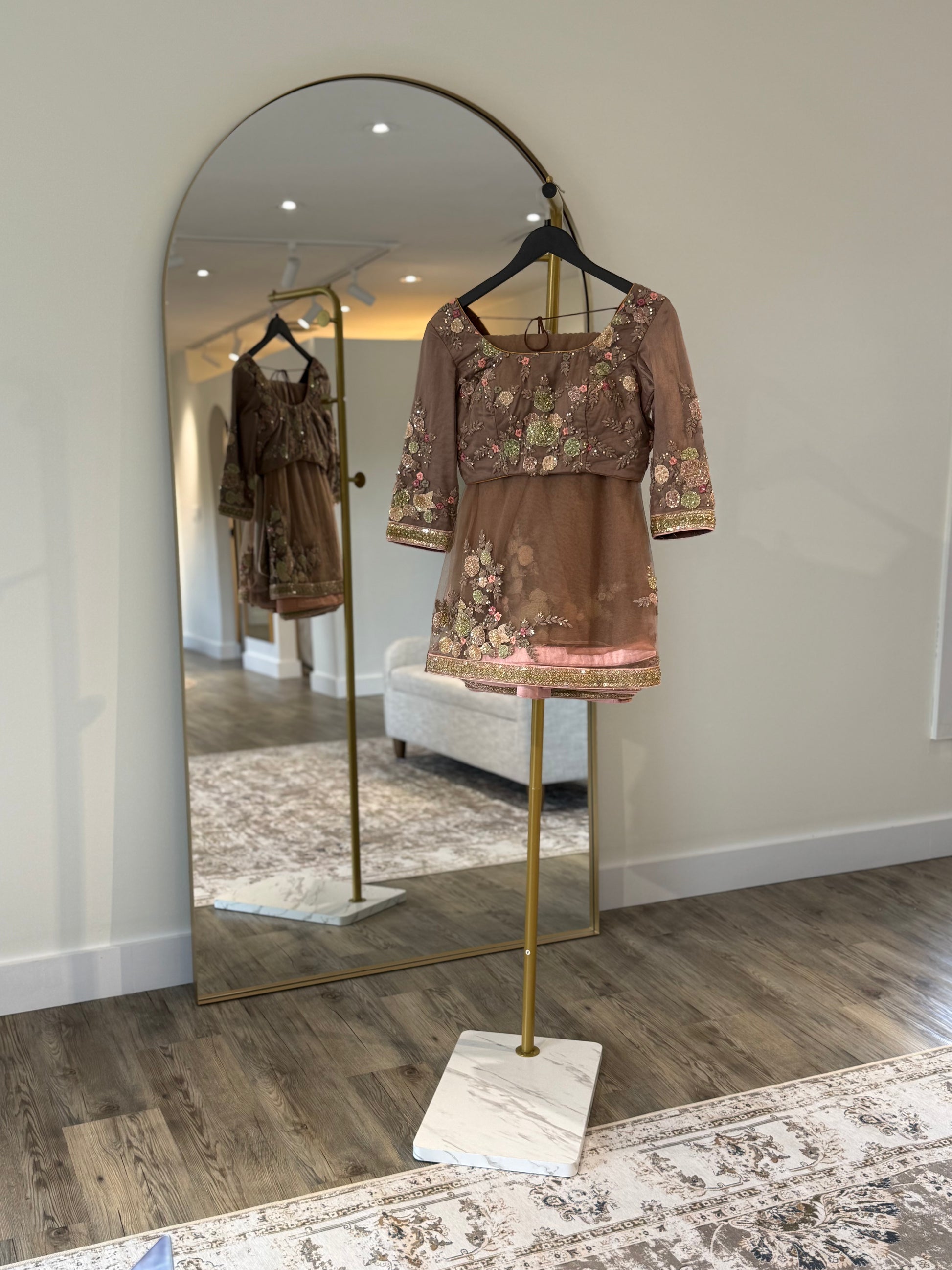 PRE LOVED Mauve coloured net Saree with pink hand embroidered flowers.